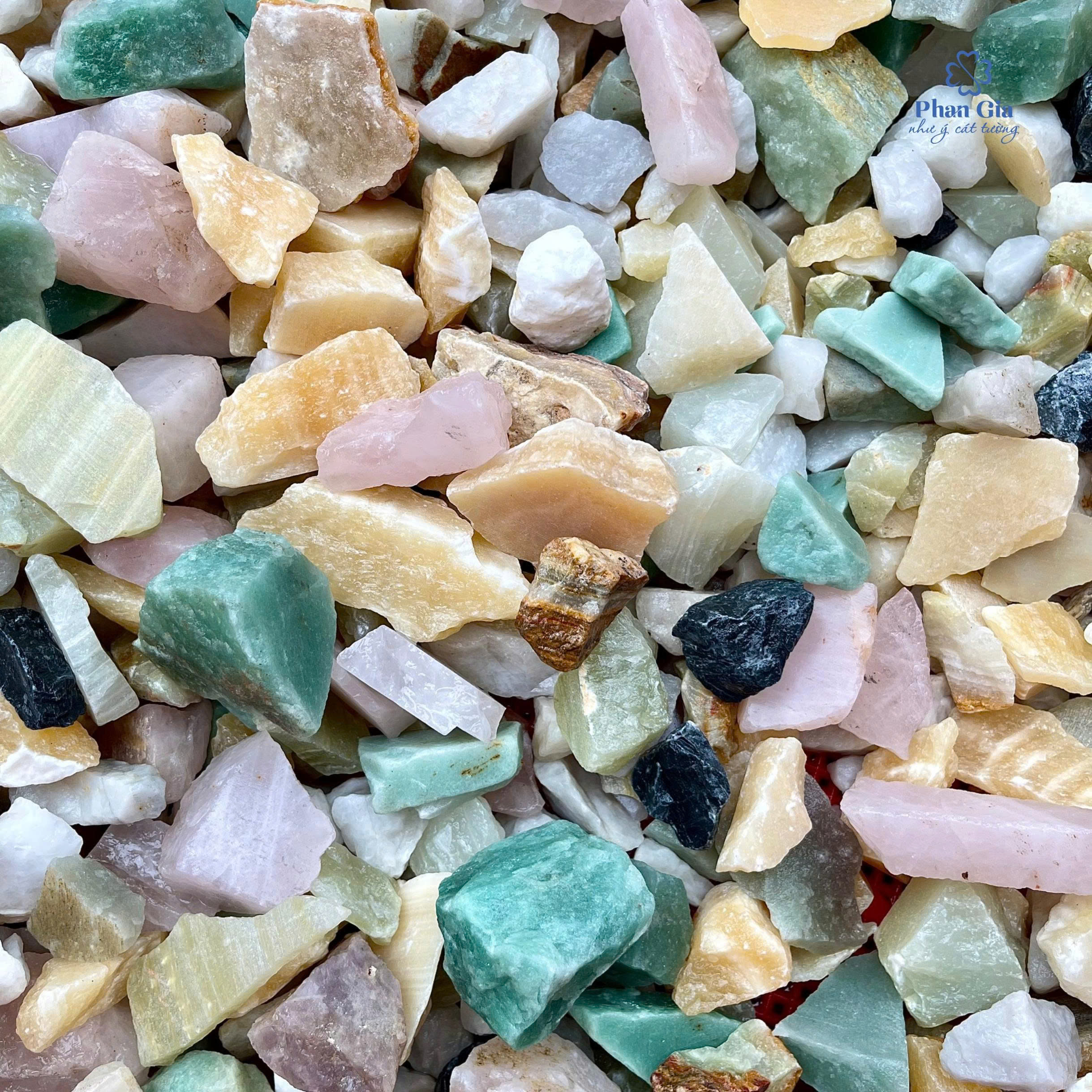 vật,..), thạch anh thô, thạch anh vụn mài bóng, thạch anh ngũ sắc,….