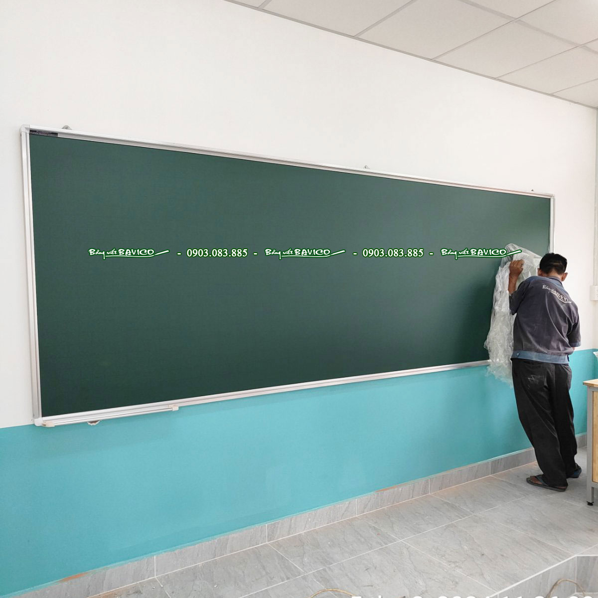 💎 Mặt bảng từ màu xanh viết phấn được nhập khẩu trực tiếp từ Hàn Quốc. Với nét kẻ ô ly chìm