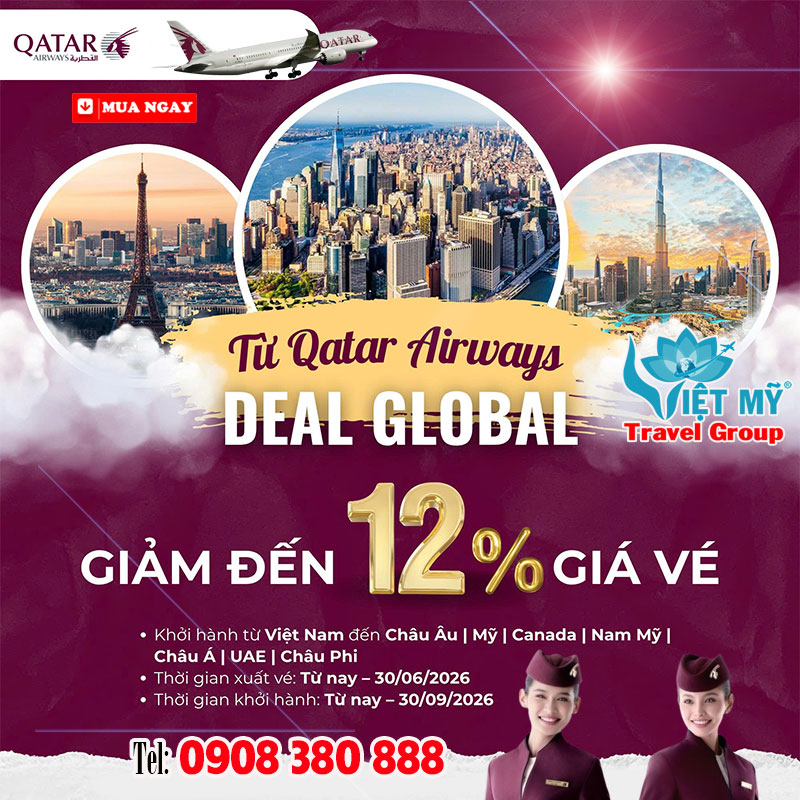 Săn vé đi Âu – Mỹ – Á giảm đến 12% cùng Qatar Airways