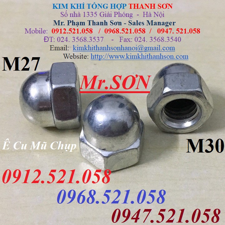 Ê cu mũ chụp đầu bu lông móng M30,M27,M24 đây 0913521058 Shop bu lông cáp thép Văn Điển,