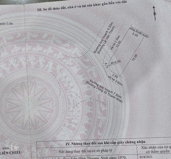 Bán đất LÔ GÓC 2 mặt tiền Dũng Sĩ Thanh Khê & Lê Văn Thịnh-P. Thanh Khê, TP Đà Nẵng-Diện tích: 80m2 (5.5x15)m-Đường rộng: 7,5m và 5,5m-Vị trí trục thông biển, cách biển 70m thoáng mát, gần chợ, siêu thị, trường học các cấp, bán kính 1.5km là các trường Đại học Bách Khoa, ĐH Sư Phạm, khu dân trí cao, an ninh tốt...Gía: 8 tỷ 800