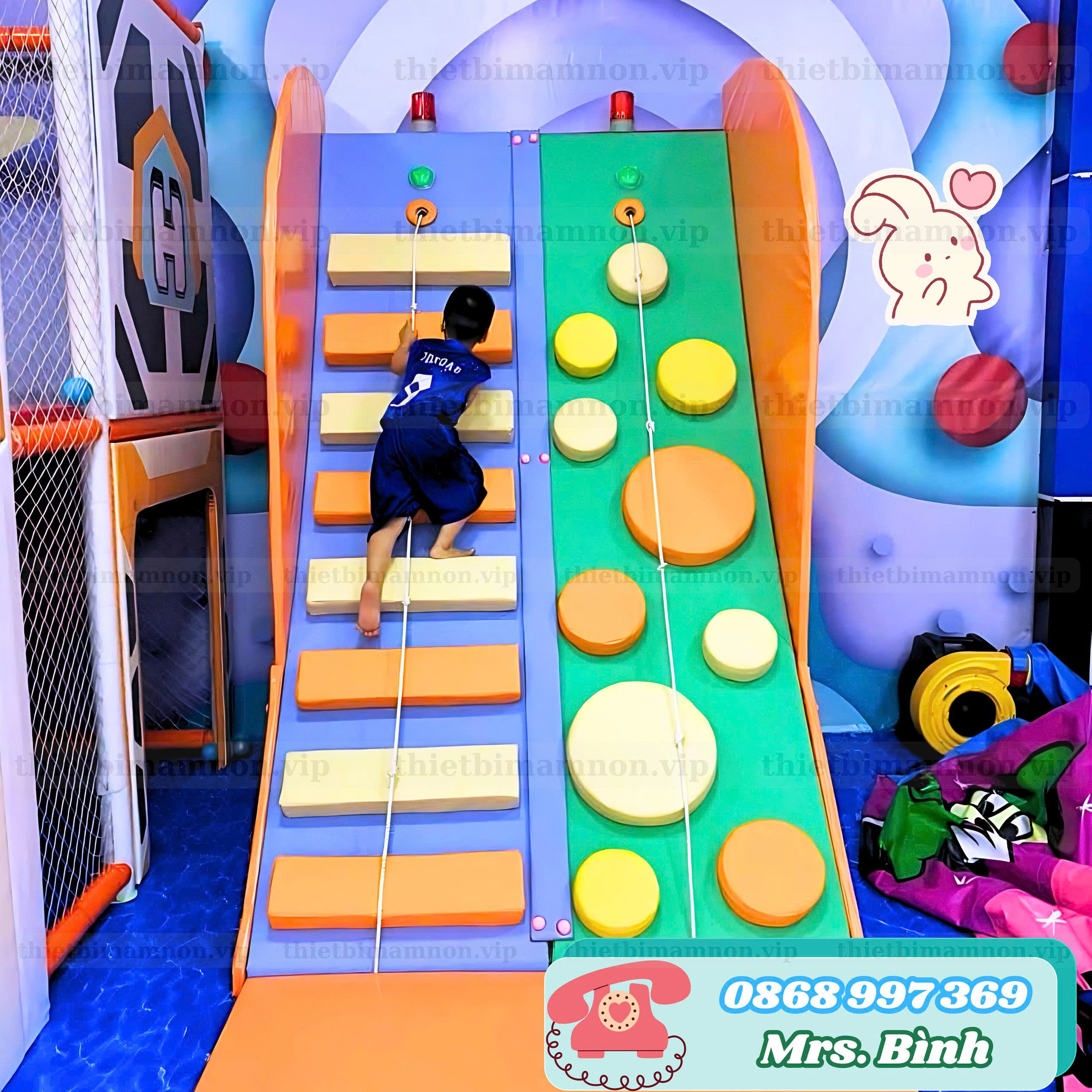 🧗♂️ Leo trèo đập chuông – bé bám dây, bước lên từng nấc như leo núi thật, chạm chuông là vỡ òa