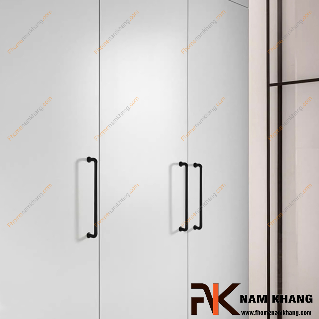 • Tủ sáng màu (Trắng, Be, Kem): Một bộ tay nắm màu Xám hoặc đen mờ sẽ là điểm nhấn sắc
